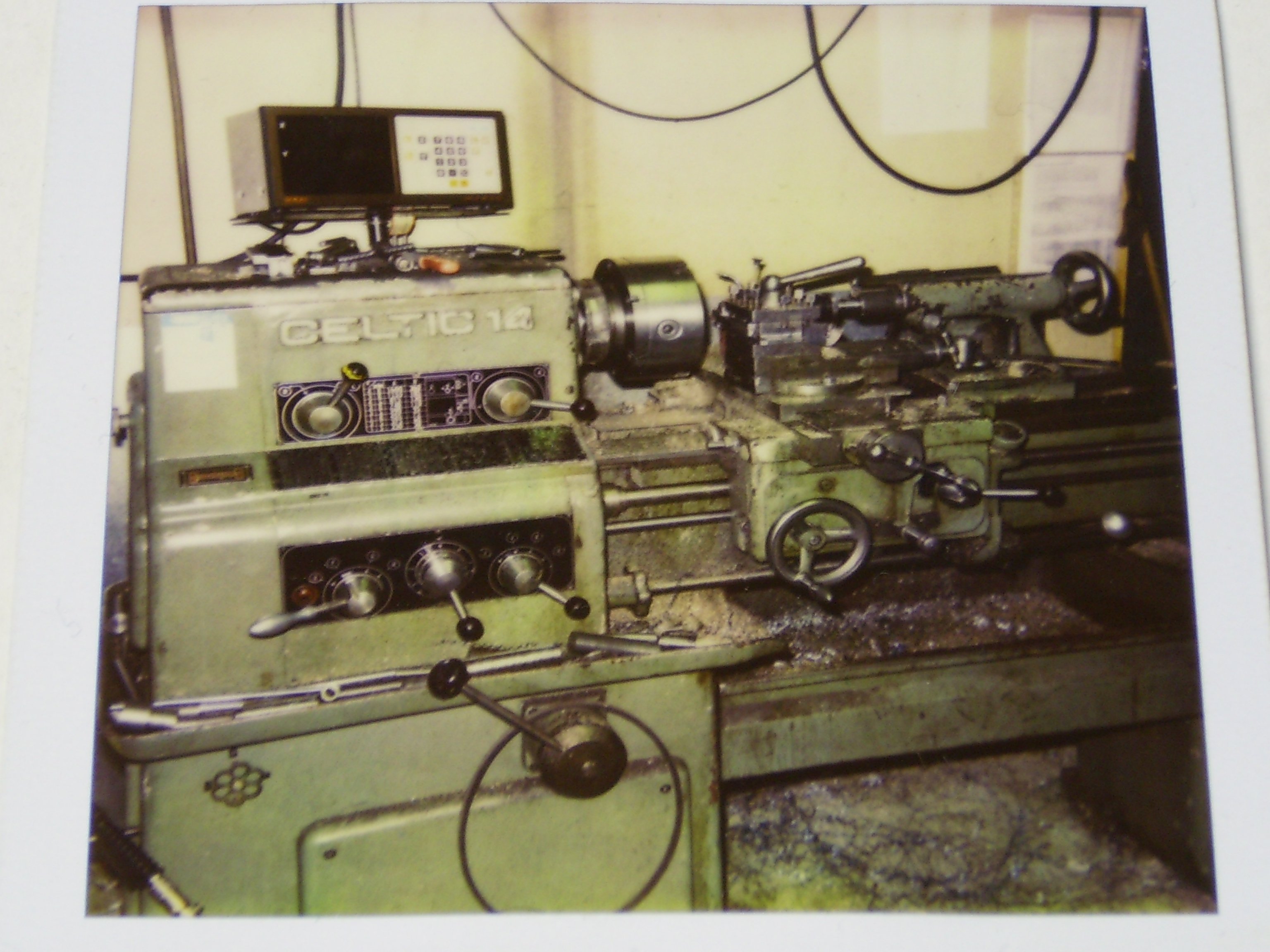 | Ensimmäinen työstökone oli huutokaupasta ostettu vanha kärkisorvi. |